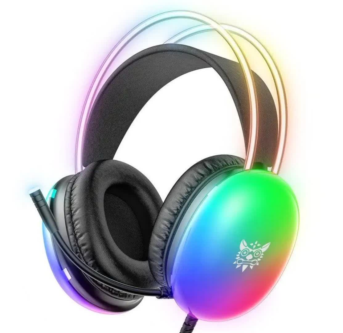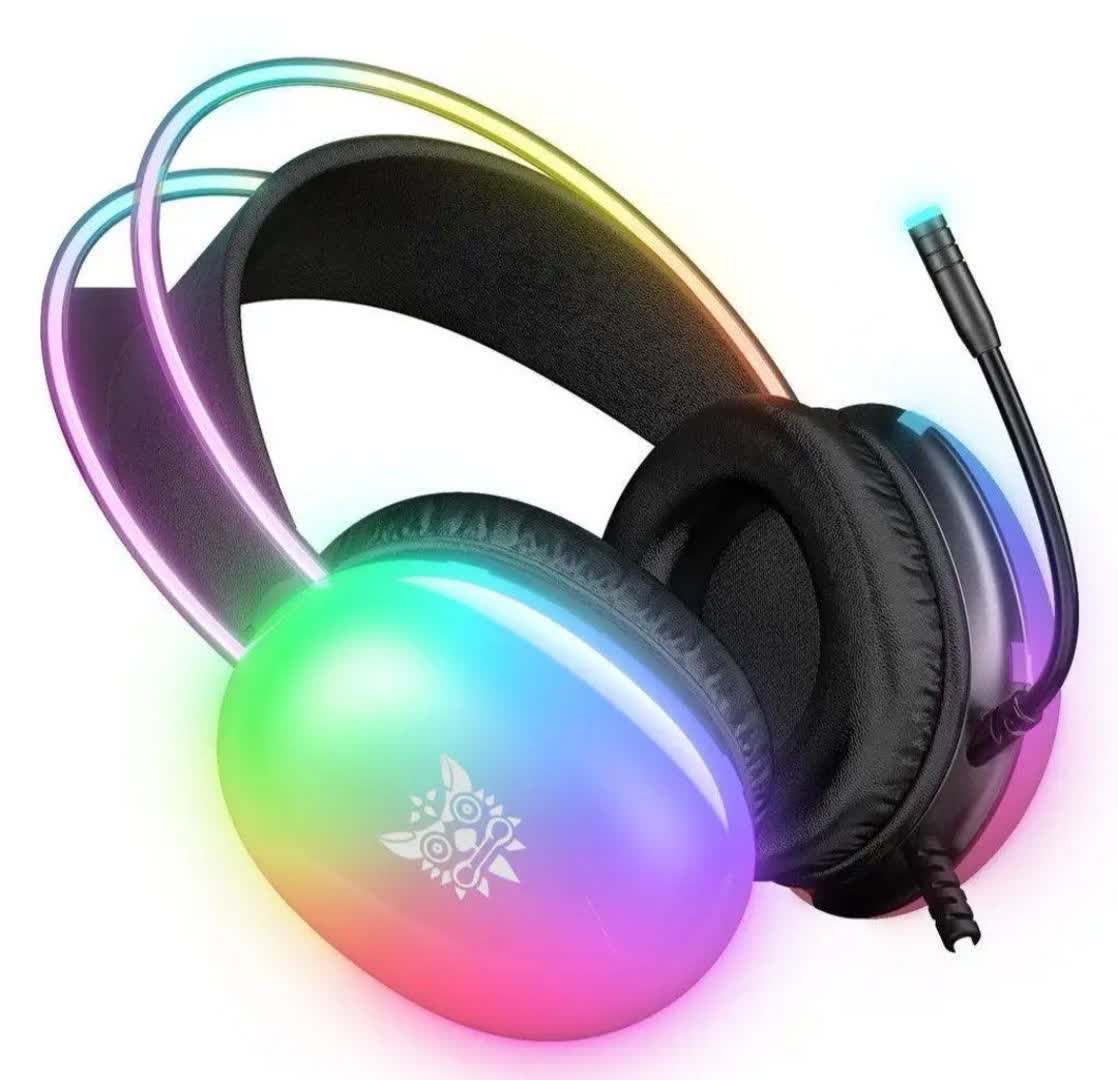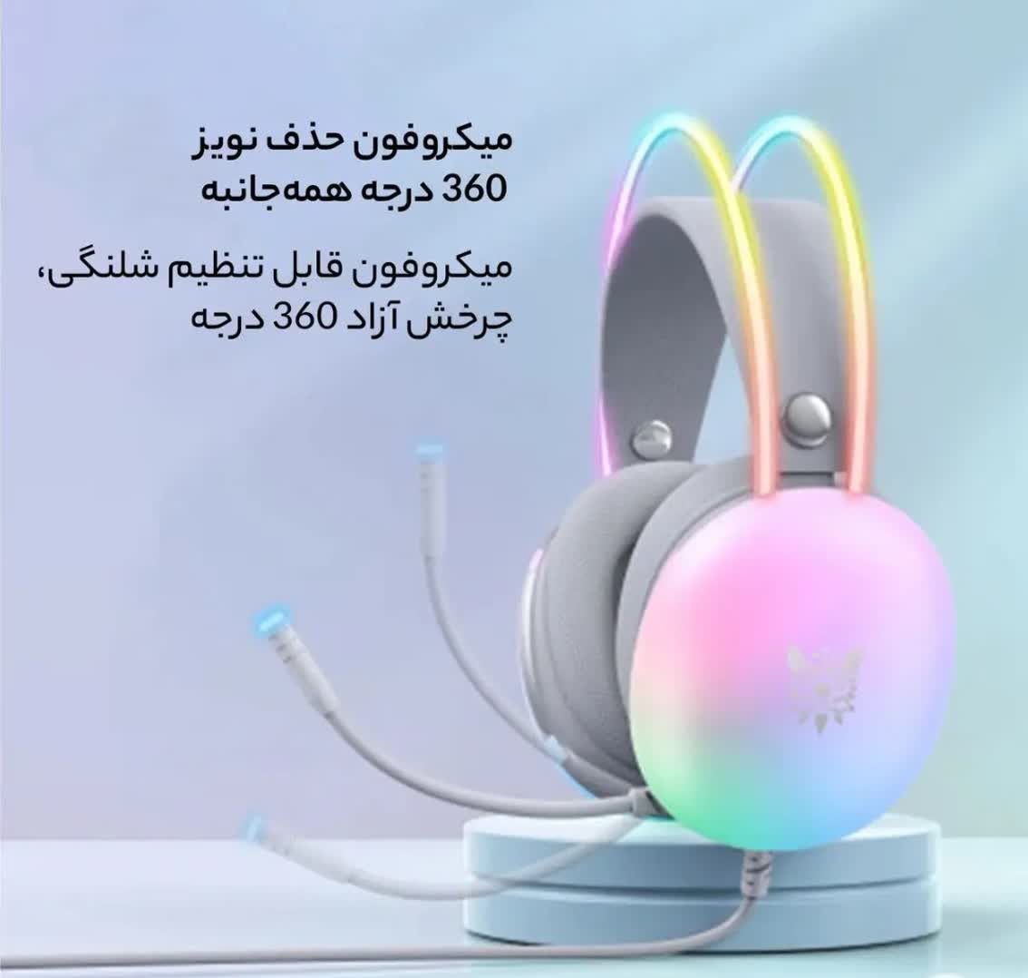 هدست گیمینگ اونيكوما مدل RGB 25 با نویز کنسلینگ میکروفون (ENC)، بدون قابلیت شارژ اتصال از طریق جک 3.5 میلی متری صدا دارای دکمه قطع و وصل میکروفون و دکمه کنترل صدا طراحی ارگونومیک و بالشتک های نرم و قابل تنظیم، مقاوم در برابر رطوبت و عرق