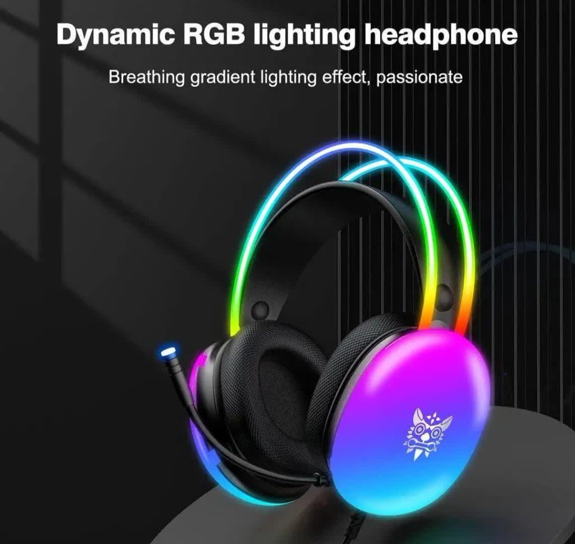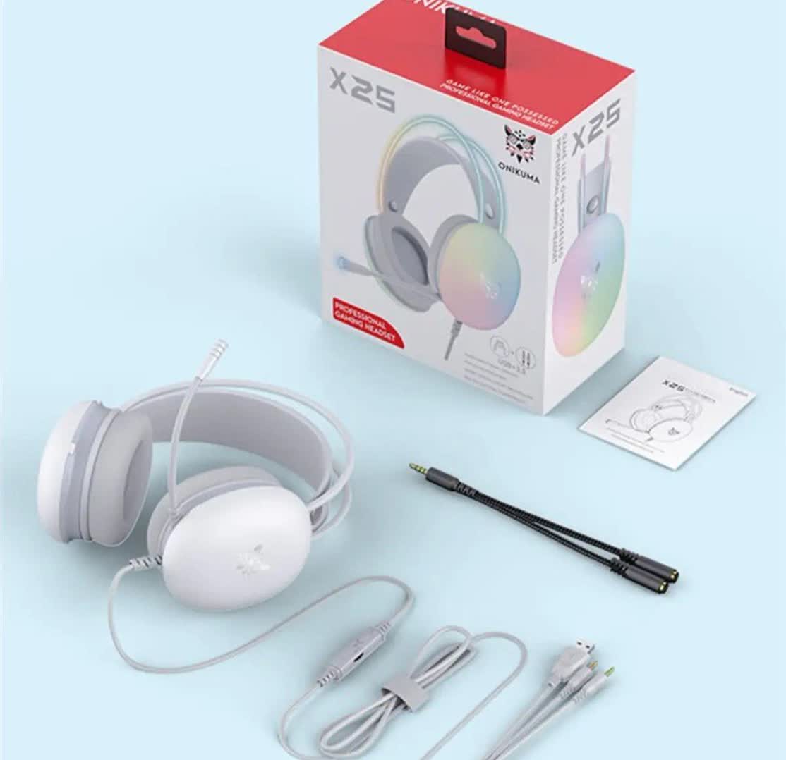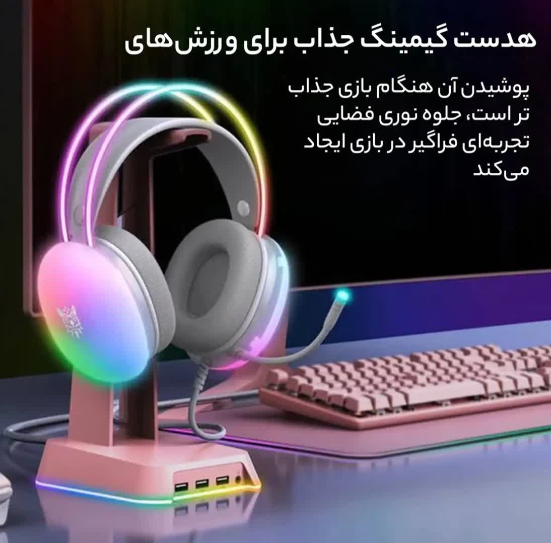 هدست گیمینگ اونيكوما مدل RGB 25 با نویز کنسلینگ میکروفون (ENC)، بدون قابلیت شارژ اتصال از طریق جک 3.5 میلی متری صدا دارای دکمه قطع و وصل میکروفون و دکمه کنترل صدا طراحی ارگونومیک و بالشتک های نرم و قابل تنظیم، مقاوم در برابر رطوبت و عرق