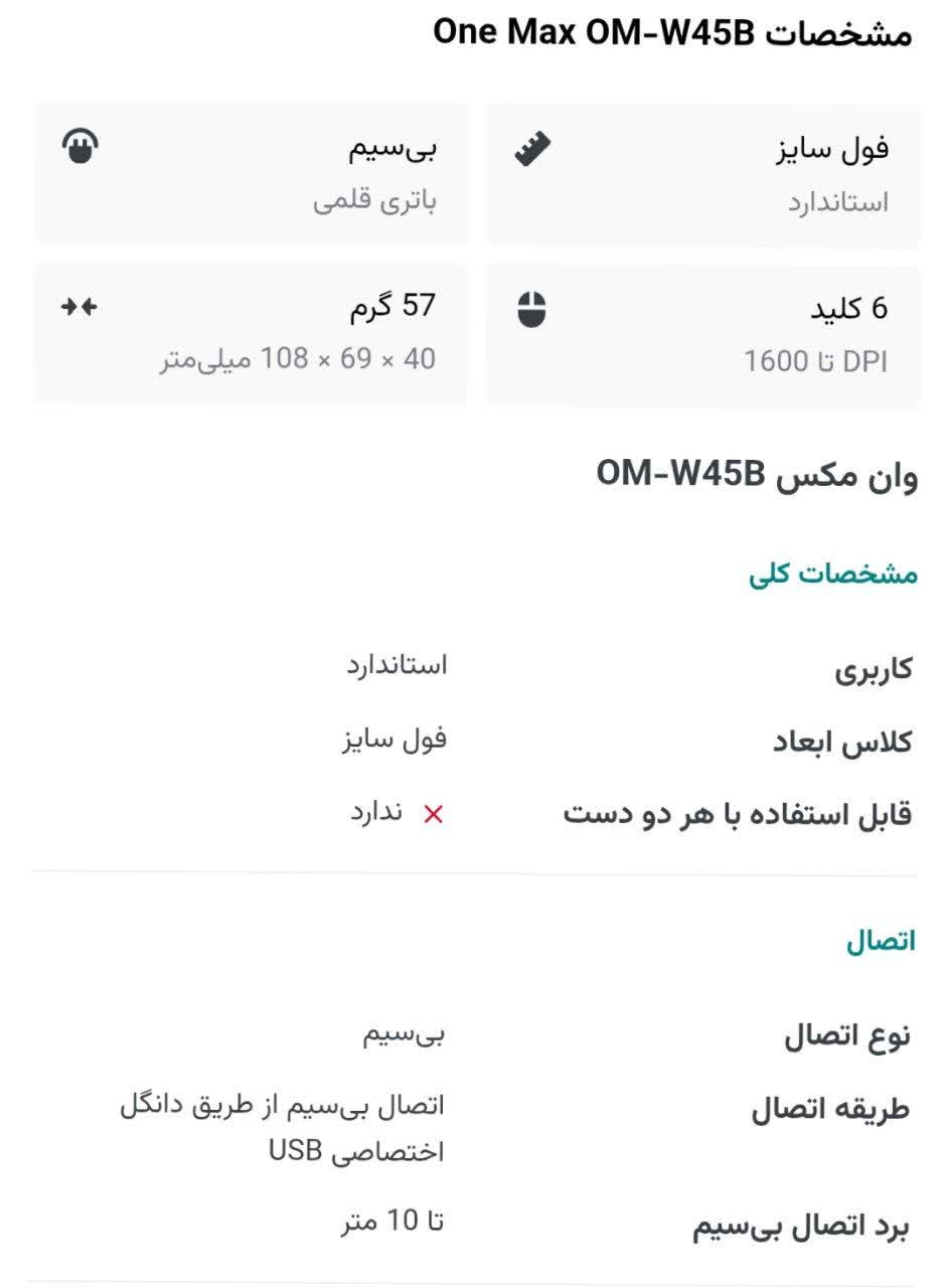 با موس بی سیم وان مکس مدل OM-۴۵B، تجربه ای بی نظیر از کار با کامپیوتر خواهید داشت. طراحی ارگونومیک و حسگر دقیق این موس راحتی و دقت را به بهترین شکل ممکن ارائه میدهد. اتصال بی سیم پایدار و طول عمر بالای باتری آزادی حرکت را بدون محدودیت برای شما فراهم میسازد. همین حالا خرید کنید و کارایی روزانه تان را متحول کنید